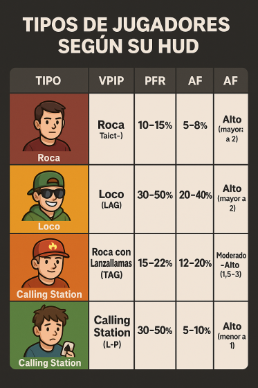 Aquí tienes cómo identificar los diferentes tipos de jugadores usando estadísticas del HUD (Heads-Up Display) cuando juegas al póker online.