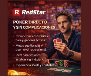 RedStar ha crecido como una opción fiable para jugadores que buscan estabilidad y acción continua. Sus mesas atraen tanto a recreacionales como a grinders, con promociones constantes que mantienen la motivación en cada sesión. El software es intuitivo y eficiente, ideal para sesiones de largo aliento.